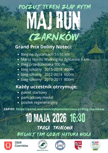 Bieg odbędzie się dnia 10 maja 2026 r. (niedziela) godz. 16.30 na terenach Parku Staszica w Czarnkowie oraz okolicznych lasów Nadleśnictwa Krucz.