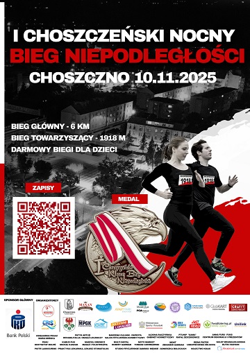 I CHOSZCZEŃSKI NOCNY BIEG NIEPODLEGŁOŚCI odbędzie się w poniedziałek, 10 listopada 2025 r. w Choszcznie