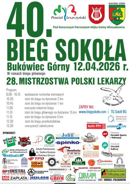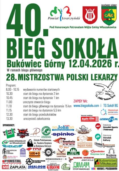 40 Bieg Sokoła i 28 Mistrzostwa Polski Lekarzy odbędzie się 12 Kwietnia 2026 (niedziela) w Bukówcu Górnym
