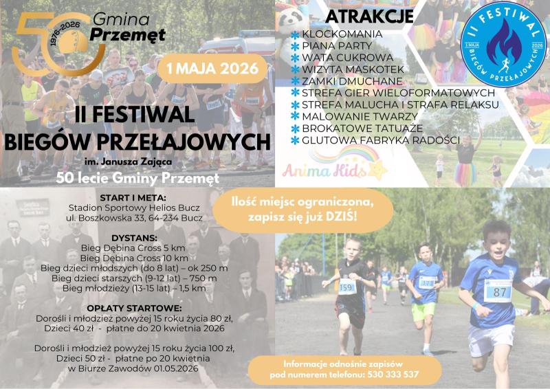 2 Festiwal Biegów Przełajowych im. Janusza Zająca odbędzie się 1 maja 2026r. w Buczu