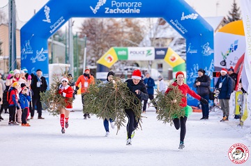 Zamiast tradycyjnej pałeczki zawodnicy przekazują sobie średniej wielkości drzewko choinkowe.