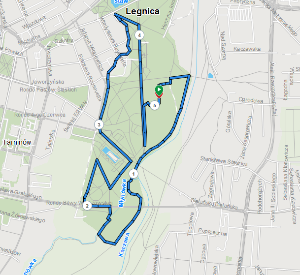 Start i meta: Boiska Wielofunkcyjne w parku miejskim, trasa- alejami parku miejskiego